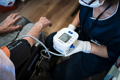 「噛む・飲み込む・話す」など、お口の機能を維持・改善するための支援です。歯科医療の立場から口腔機能評価や口腔リハビリ、トレーニングを行い、生活の質の向上を目指します。