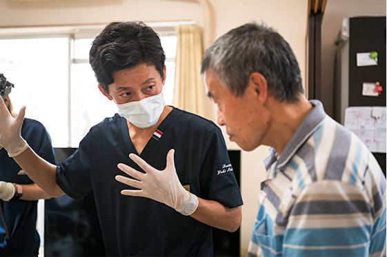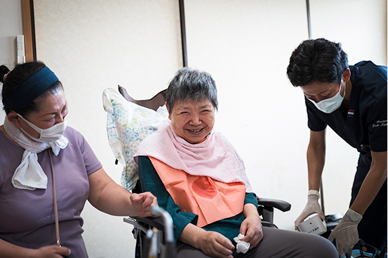 元気に歯科医院に通われていた患者さんが、病気やケガで突然通院できなくなることは珍しくありません。そうした時、歯やお口のケアが後回しになると、食事や会話に支障をきたし、生きる楽しみを失ってしまうこともあります。当院では、患者さんと長期的なお付き合いをする覚悟を持ち、日々歯科診療に取り組んでいます。状態に応じて、外来から訪問診療へとつなぎ、一人ひとりの人生に最後まで寄り添える歯科医院でありたいと考えています。