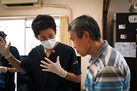 私たちが目指すのは、治療だけで終わらない歯科医療です。むし歯や入れ歯の治療だけでなく、患者さんの生活背景やご家族の状況、マンパワーまで考えた歯科医療を心がけ、患者さんやご家族の方を支えていきたいと考えています。一般的な歯科治療や介護サービスだけでなく、「その人らしく食べる」「自分らしく生きる」ために必要なサポートを他職種と連携しながらご提供します。