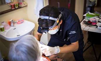 当院では摂食嚥下障害のある方を対象としたサポートも行っています。単に「口から食べること」を目標とするのではなく、歯科の観点から検査・評価をすることで、より安全性に配慮した支援を実践していきます。また、むし歯や歯周病などの治療が必要な場合でも、歯を治すだけでなく、安全に食べられることを見据えながら治療していきます。