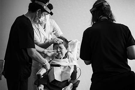治療やケアの効果を確認しながら、1〜2週間ごとに定期的な訪問歯科診療を行います。お口の健康を守るだけでなく、食事や会話を楽しむ力を維持できるよう、一人ひとりに適したサポートをしていきます。また、ご家族の方やケアスタッフと情報を共有し、より良い日常生活が送れるよう継続的に支援を行っていきます。